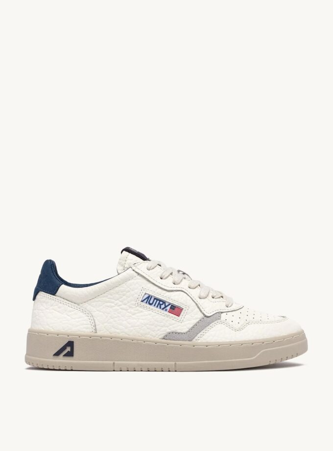ZAPATILLAS MEDALIST LOW DE PIEL BLANCA Y AZUL Y ANTE BEIGE Autry