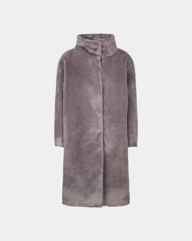 ABRIGO HERNO Abrigo de pelo sintético sumamente suave efecto castor. Es un clásico atemporal, de líneas sencillas y sofisticado al tacto, perfecto para combinar con conjuntos muy elegantes o glamurosos según la ocasión.