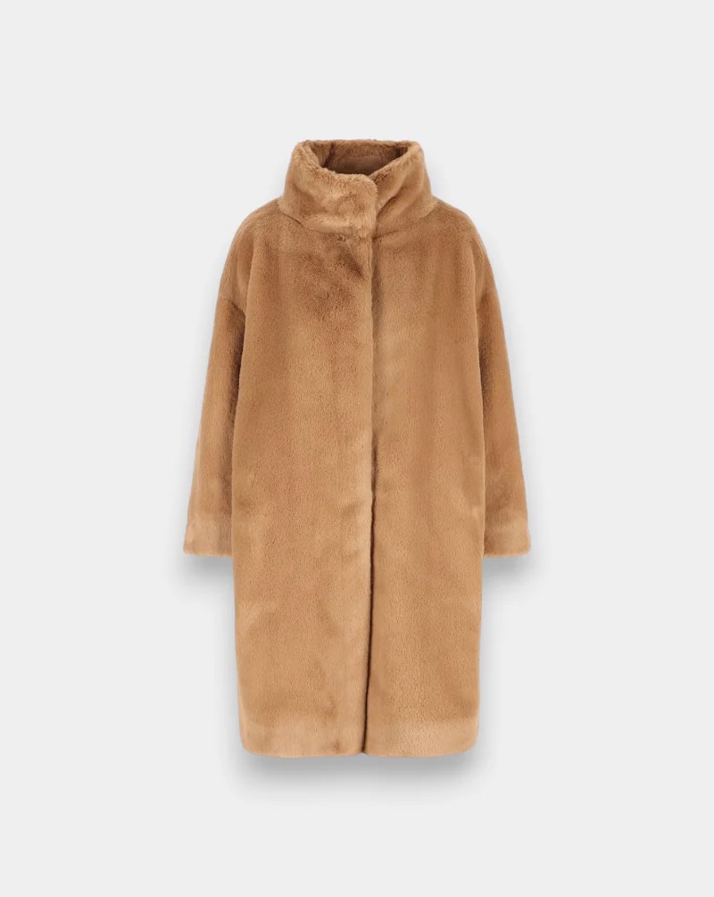 ABRIGO HERNO   Abrigo de pelo sintético sumamente suave efecto castor. Es un clásico atemporal, de líneas sencillas y sofisticado al tacto, perfecto para combinar con conjuntos muy elegantes o glamurosos según la ocasión.