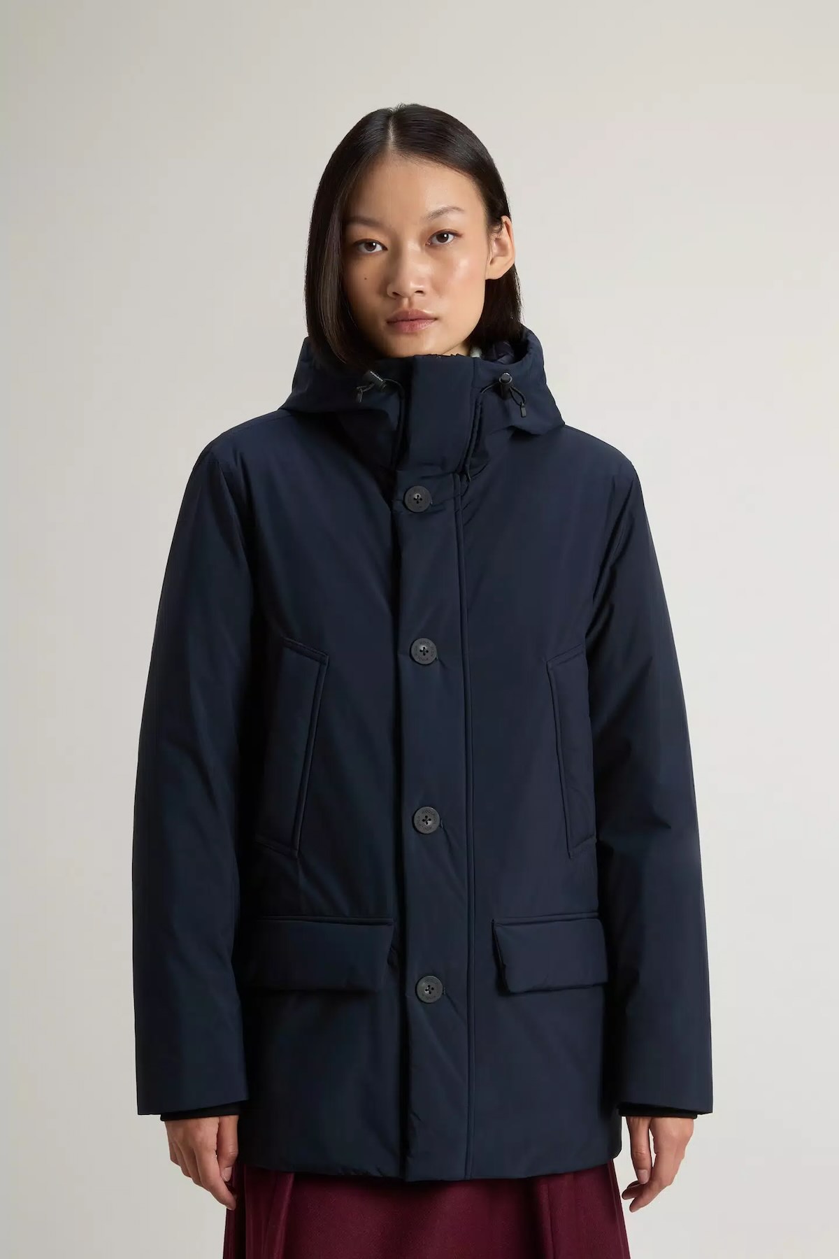 - PARKA WOOLRICH Un icono revisitado de la Cloud Series, nuestra cápsula de prendas cálidas pero ligeras como una nube. Diseñado para ofrecer protección y confort en los meses fríos, este parka acolchado con plumón de pato combina prestaciones técnicas con gran atención al detalle. Confeccionado en un tejido resistente al agua, cortavientos y transpirable, ha sido tratado con un acabado hidrófugo sostenible WR C0. Incluye capucha fija ajustable con tope de cordón, cierre frontal con cremallera bidireccional y tapeta con botones automáticos, además de detalles funcionales ocultos como botones automáticos en el cuello alto y en el bajo. El cordón interior con cinta logotipada garantiza un ajuste óptimo. No faltan los icónicos bolsillos frontales dos bolsillos calientamanos en el pecho y dos con solapa, cremallera oculta y botones automáticos ni el bolsillo interior con cremallera. Los puños de canalé y el logotipo estampado en la capucha completan el diseño. Hecho de Cloud Poly