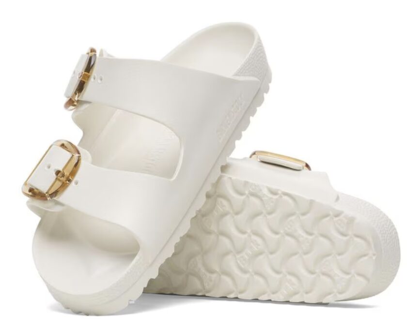 - SANDALIA BIRKENSTOCK El modelo Arizona de BIRKENSTOCK es un auténtico clásico. El modelo que presentamos, que imita la sandalia de corcho, está fabricado en EVA. EVA es un material plástico de alta calidad, no tiene olor ni sustancias contaminantes y reúne muchas características positivas: es muy ligero, de alta elasticidad y a prueba de agua, es respetuoso con la piel y ofrece el confort habitual de BIRKENSTOCK. Esta versión incorpora nuestra popular Big Buckle, fabricada en plástico antioxidante, que destaca por su durabilidad y diseño minimalista. Plantilla anatómica BIRKENSTOCK de goma EVA