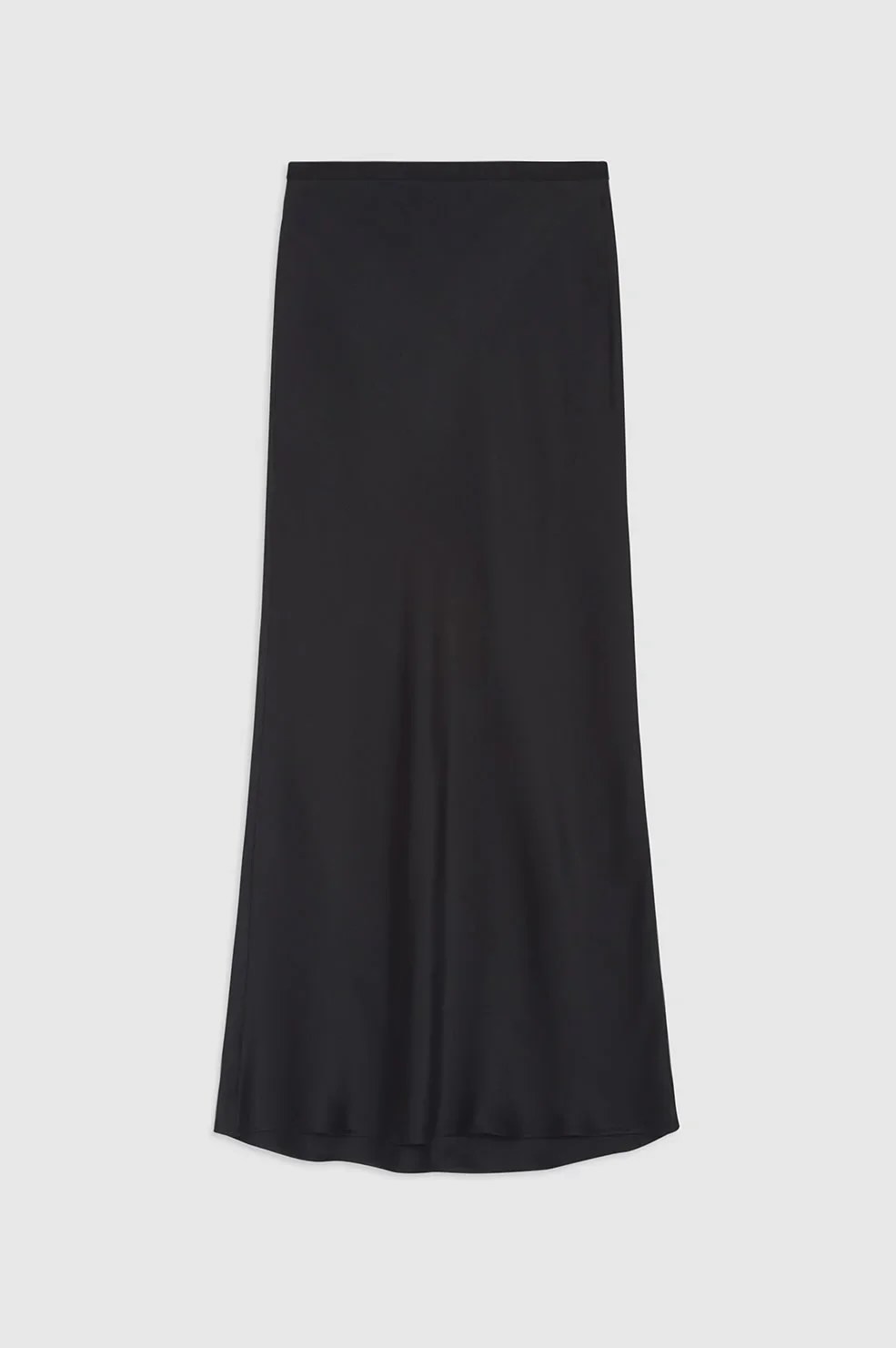 The best-selling Bar Silk Skirt in black is made from 100% double-faced silk charmeuse cut on a bias for a smooth silhouette that sits high at the waist and hugs the body through the hips. This style features an elasticated waistband for a comfortable, pull-on construction.