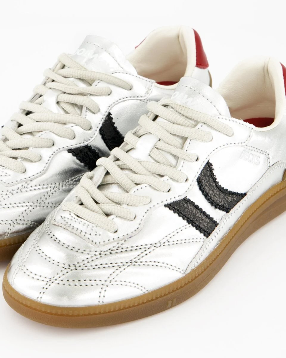 ZAPATILLAS COOLWAY Zapatillas deportivas bajas de inspiración indoor soccer. Corte de piel pulida combinada con serraje al tono. Como peculiaridad tiene una lengüeta vuelta y pespunteada, con posibilidad de quitarla o ponerla. Cierre con cordonera y talón ligeramente acolchado, con múltiples pespuntes hecho de piel serraje contrastada. Suela fina de goma y gel. El gel es visible en la planta ya que este se encuentra de manera interna en la parte del talón para mejorar la amortiguación.