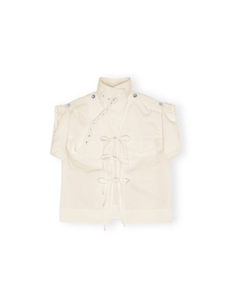 BLUSA GANNI Confeccionada en algodón 2 bolsillos parches en la parte delantera cierre con lazos