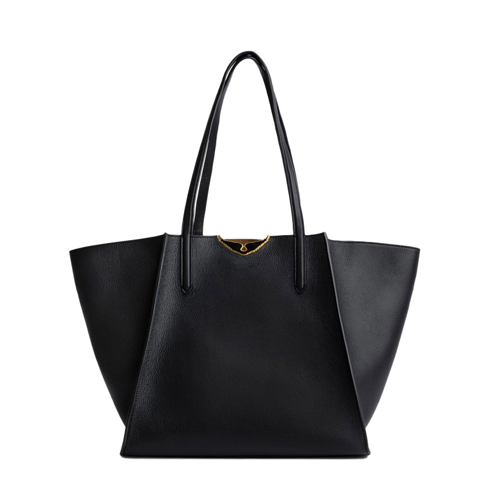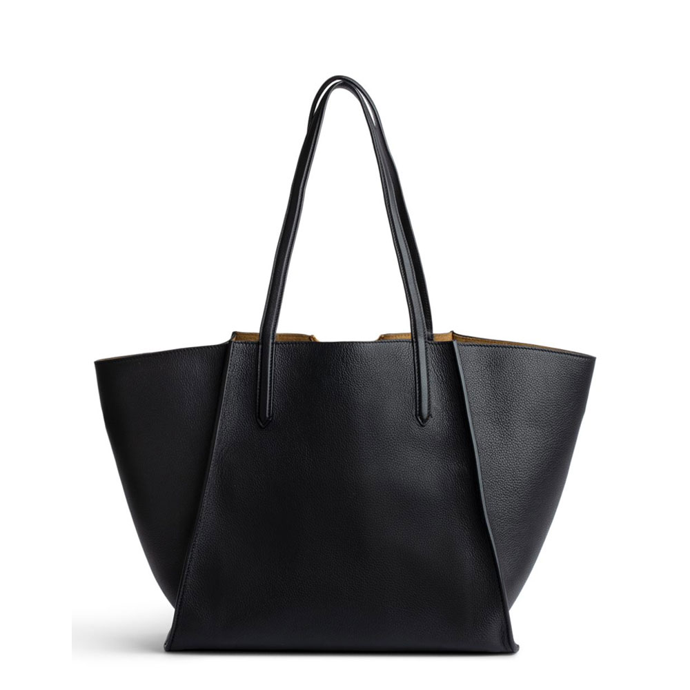 BOLSO ZADIG & VOLTAIRE El bolso tote Borderline, funcional y moderno, ofrece amplio espacio para tus objetos esenciales de diario. Piel de vacuno italiana granulada, con certificación LWG, y forro de ante beige. Alas metálicas lacadas en negro. Asas de cuero. Bolsillo interior con cremallera. Este modelo reversible se puede llevar del revés. Recomendamos tratar el ante antes del primer uso. Medidas: Ancho: 34 cm x Alto: 30 cm x Fondo: 16 cm.