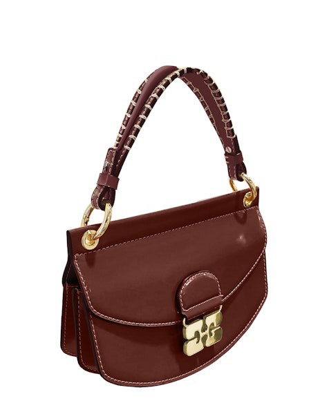 BOLSO GANNI Este bolso luce un logotipo de mariposa GANNI metálico. El bolso cuenta con un cierre magnético,3 departamentos en el interior y una correa de hombro ajustable y extraíble para llevarlo cruzado.
