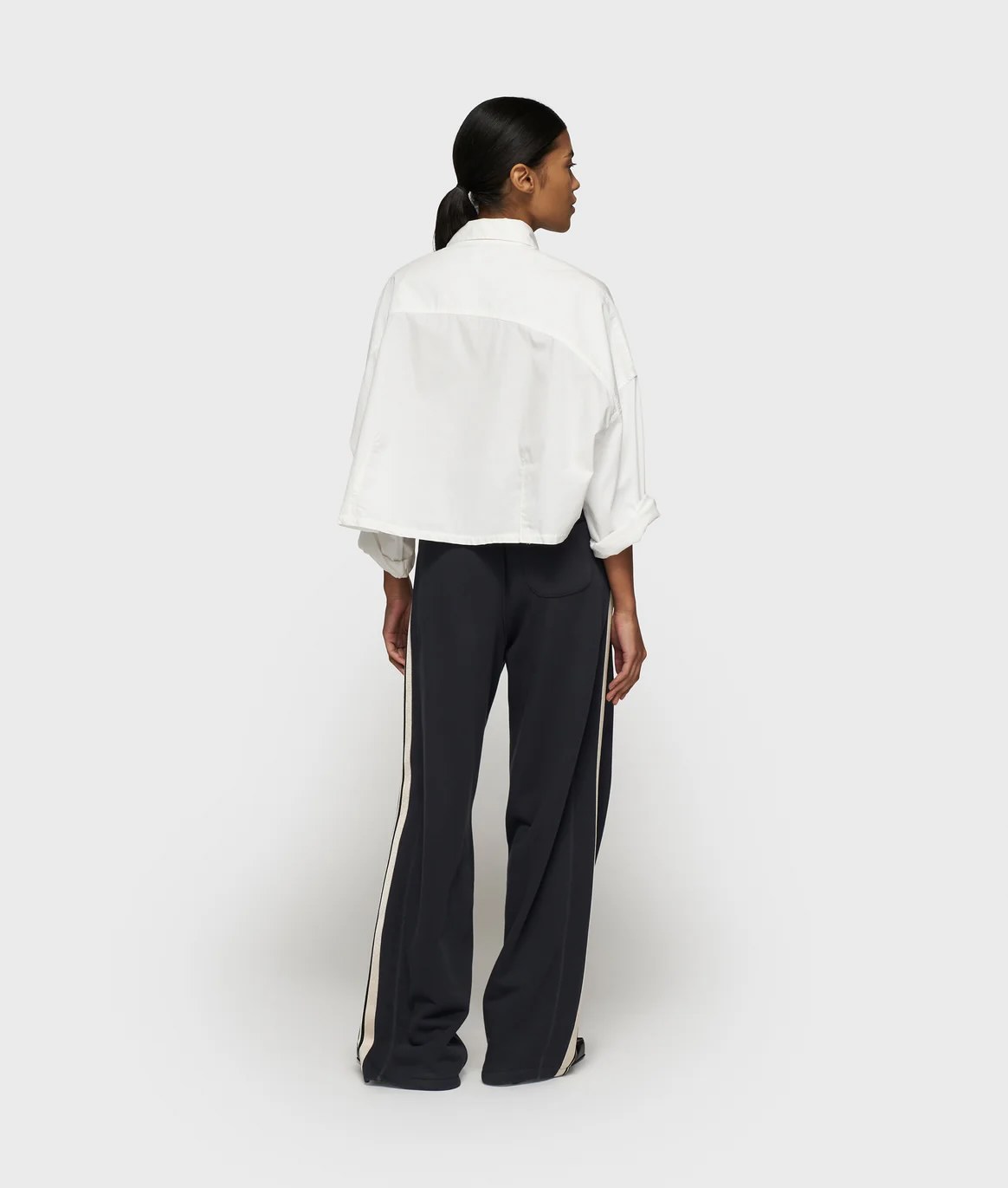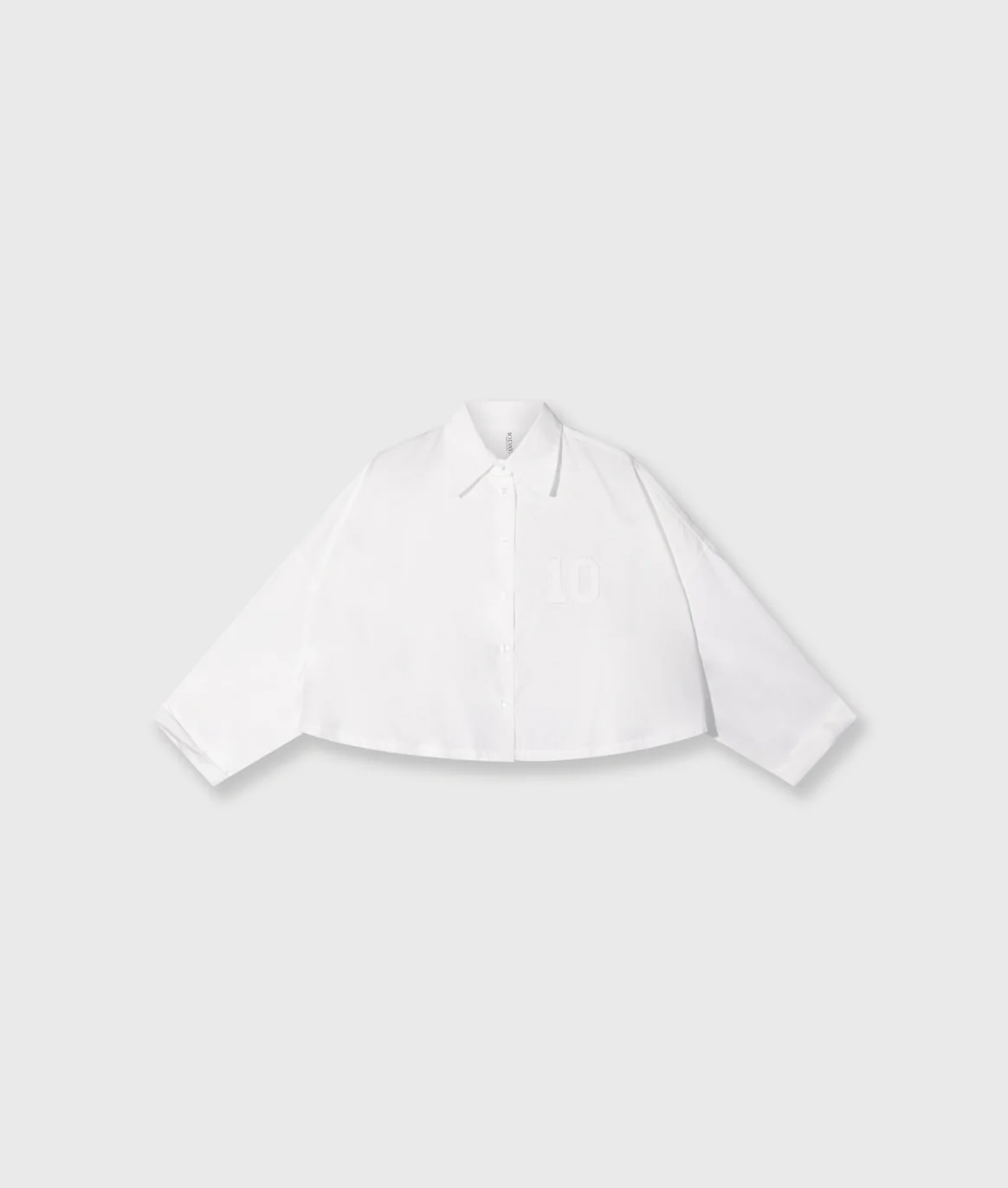 CAMISA 10DAYS Camisa corta de corte extragrande, confeccionada en sarga de algodón orgánico con certificación GOTS en el cuerpo y mangas de jersey seco. Presenta cuello con cierre de botones, dobladillo redondo más largo en la espalda, mangas con vuelta, un festón "baseball 10" en la parte delantera y un monograma "10" bordado en la manga izquierda.