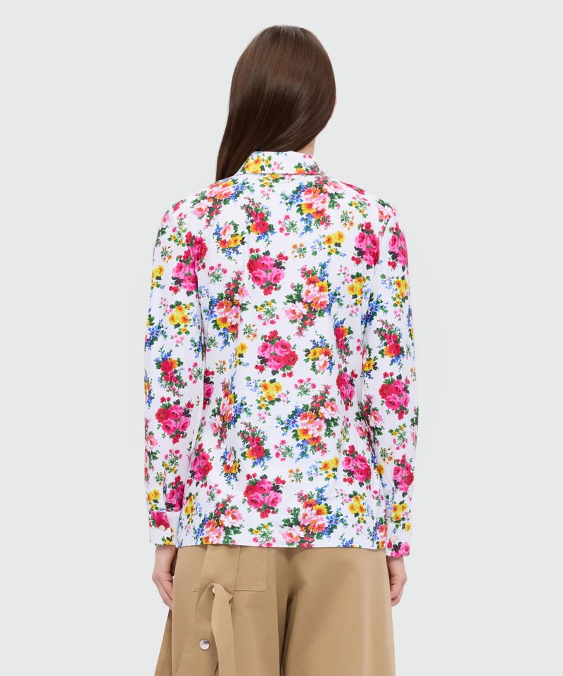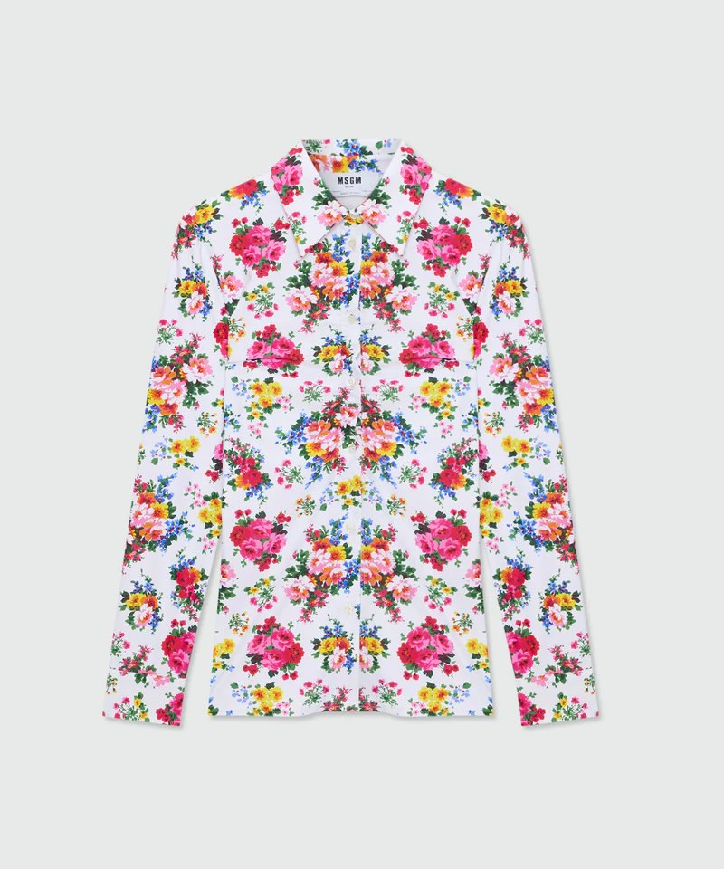 Camisa de licra con estampado floral y el logotipo de MSGM estampado en la espalda. Corte ajustado. La modelo lleva la talla S/40.