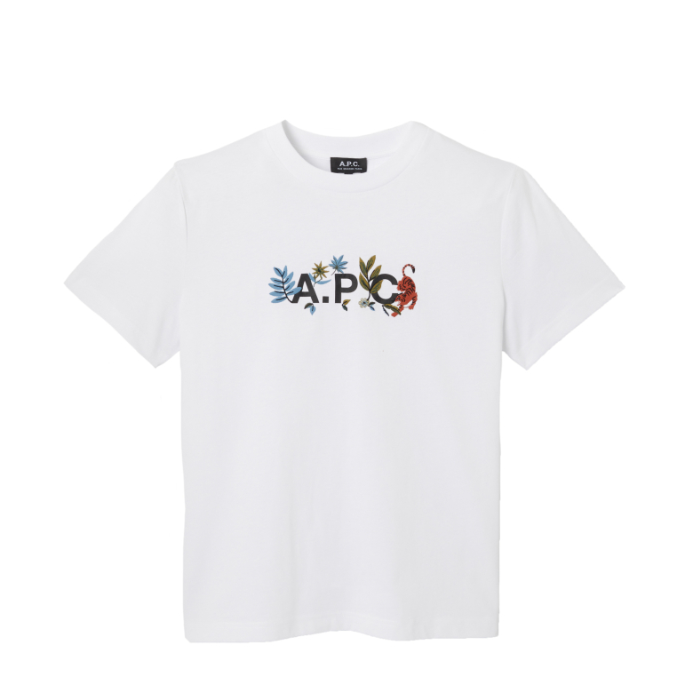 CAMISETA A.P.C. Confeccionada con una mezcla consciente de algodón reciclado y orgánico, la camiseta con el logotipo floral de APC cubre tus momentos casuales con su estampado floral decorativo en el logotipo del pecho.