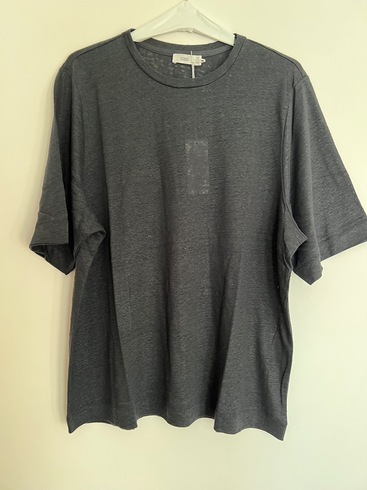 CAMISETA COLOR NEGRO CORTE SUELTO MANGA CORTA 100% LINO.