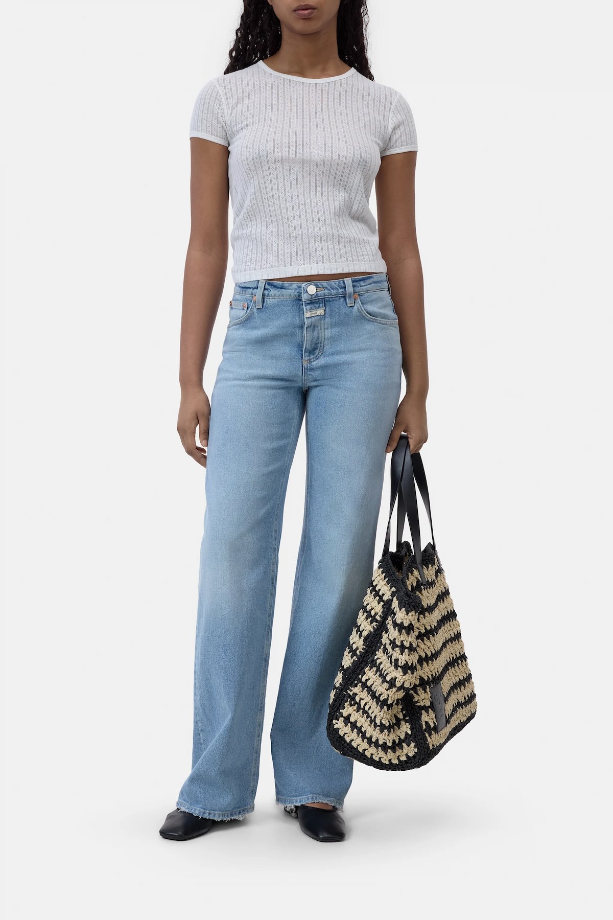 - Esta camiseta está confeccionada con una mezcla de algodón y lana de alta calidad. Su corte ajustado y largo regular le confieren una silueta moderna. El ribete acanalado en el cuello y el bajo, junto con la etiqueta Closed en la costura lateral, completan el diseño. Hecha en Portugal. Nuestra modelo (177 cm) usa la talla S.