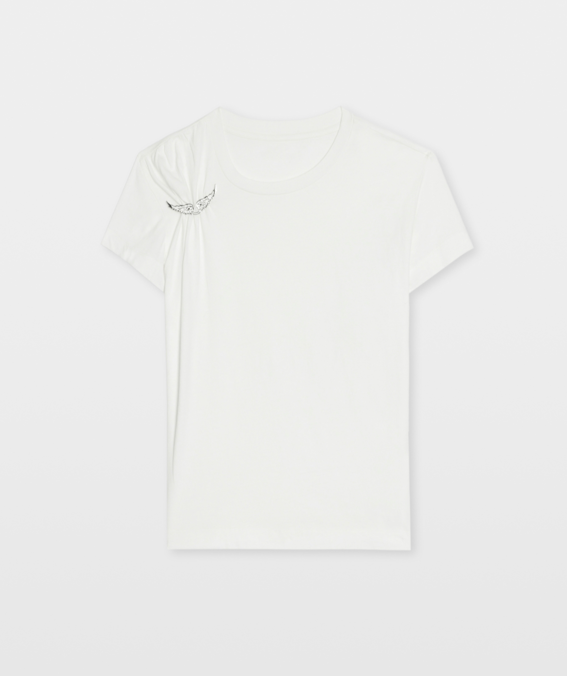 - Tejido plisado con broche decorativo de alas en la parte delantera