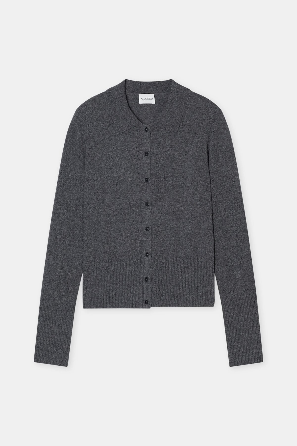 El cárdigan con cuello presenta un corte entallado y una clásica tapeta de botones. Está confeccionado en cachemir suave al tacto y presenta detalles acanalados en las mangas y el bajo. Hecho en China Material y cuidado 100 % cachemir Lavar a mano No usar lejía No secar en secadora Planchar a baja temperatura Limpieza en seco con un proceso suave