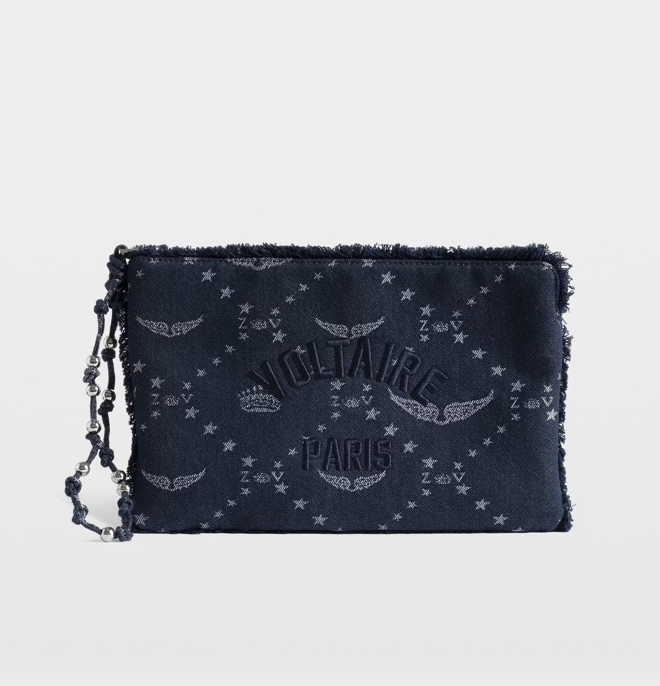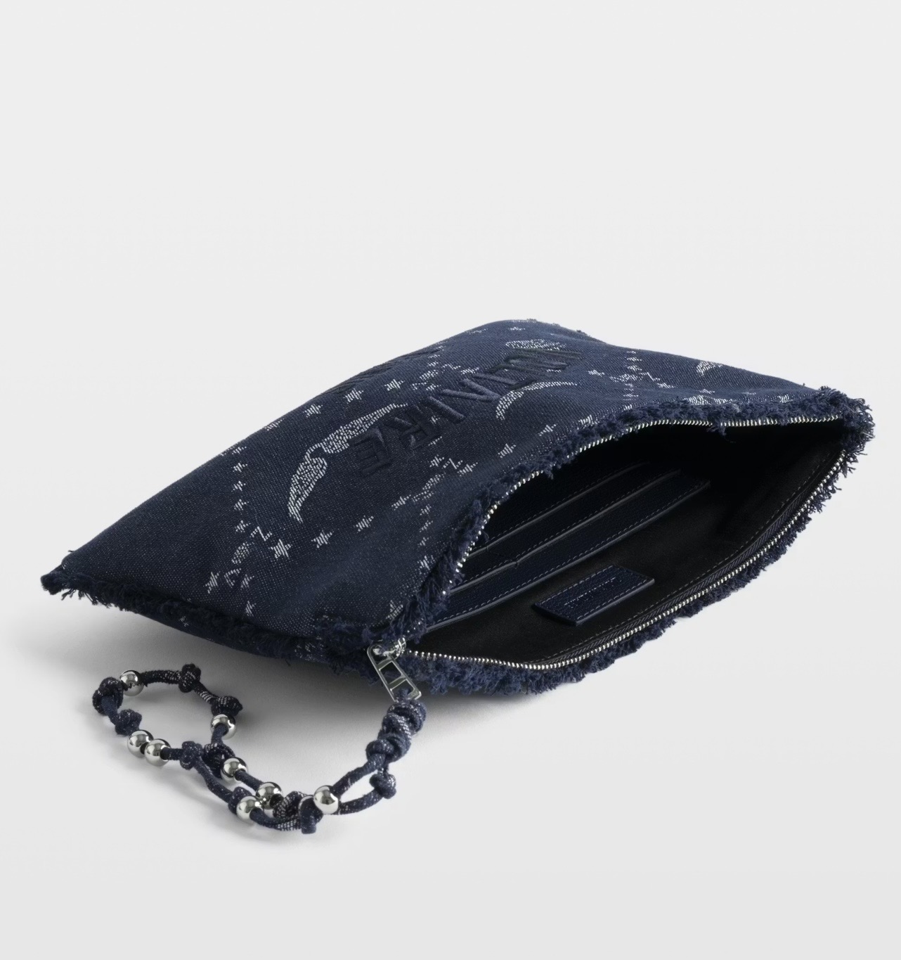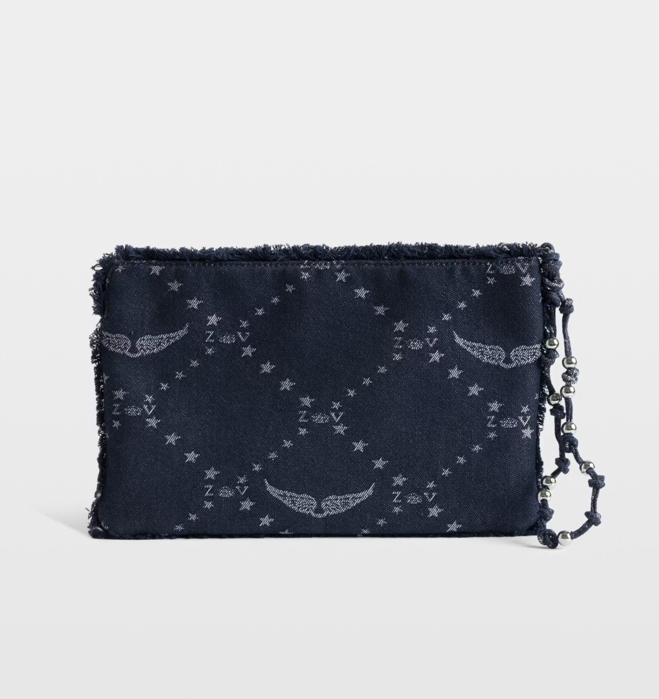 Bolso de mano de denim monograma con alas de firma.