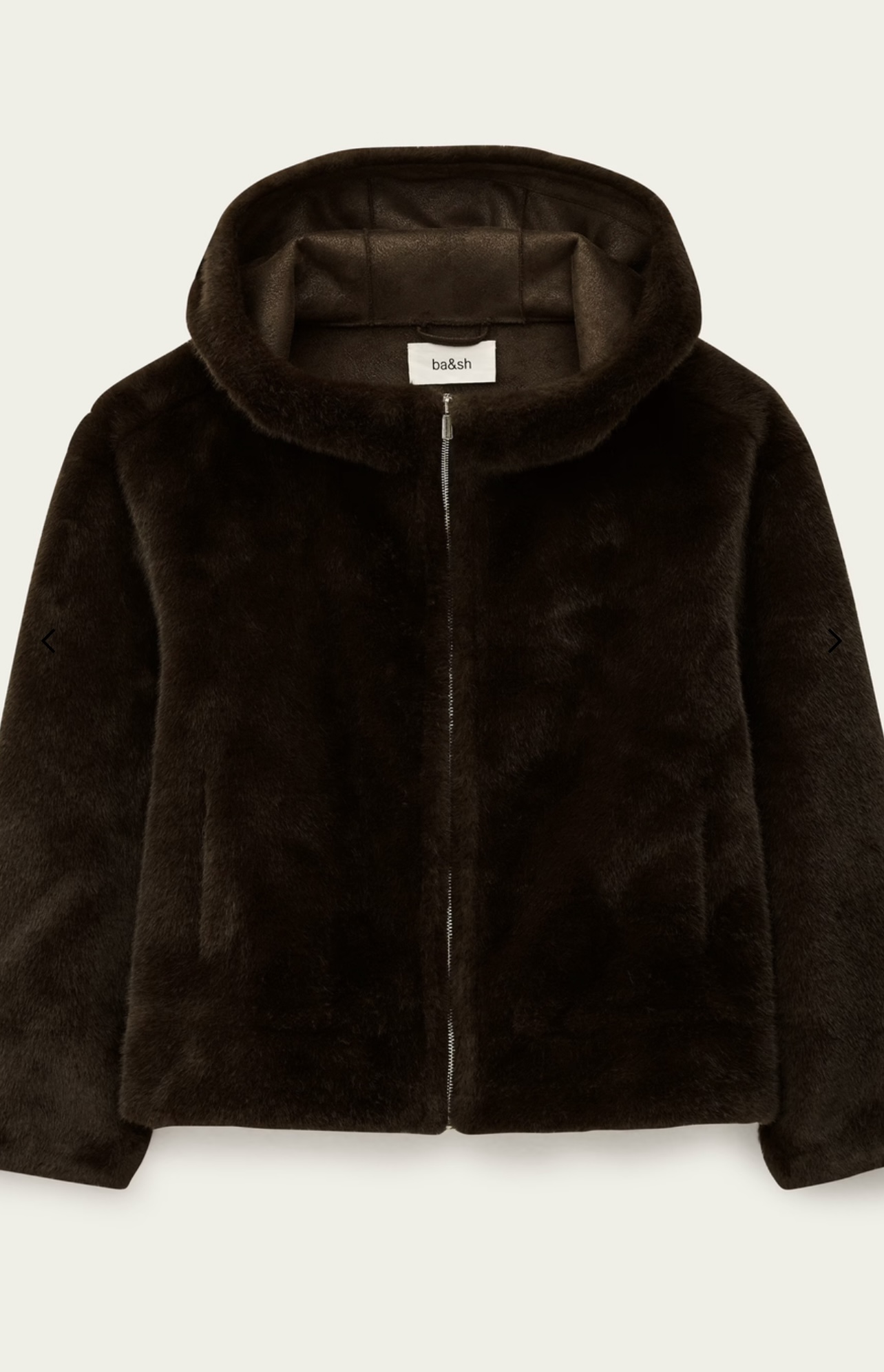 CHAQUETA BA&SH Chaqueta de pelo sintético con capucha y cierre cremallera Composición: 100 % poliéster Fabricado en: China Limpieza en seco No usar lejía No planchar Limpieza en seco No usar secadora