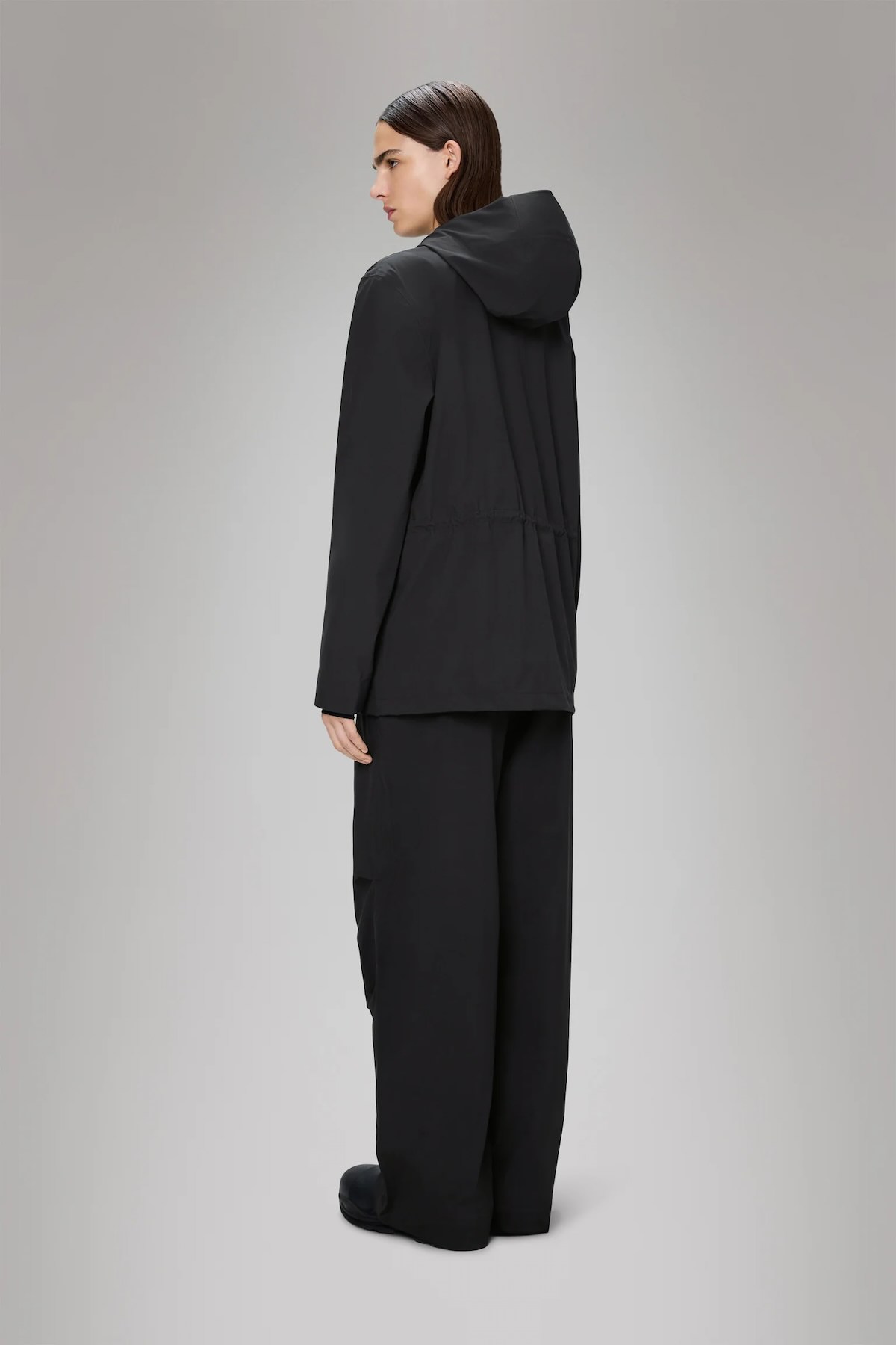 – Cordón de ajuste en capucha y cintura