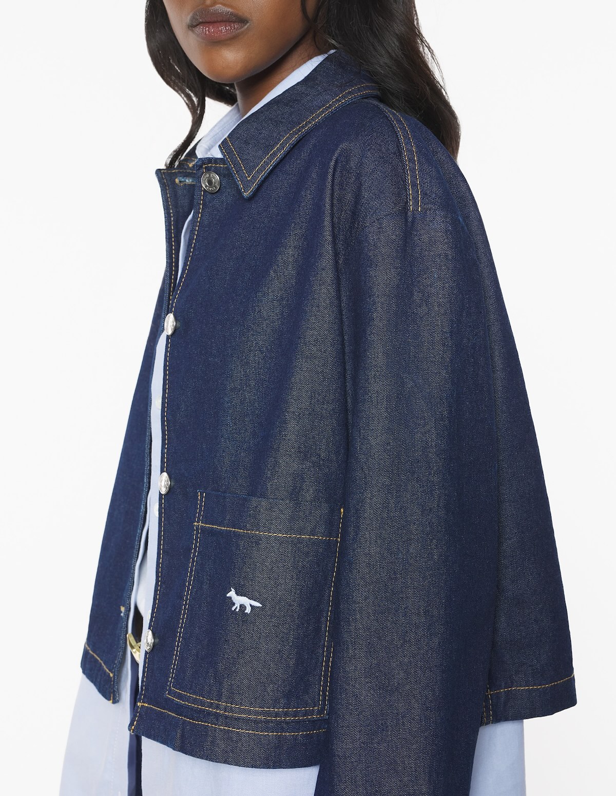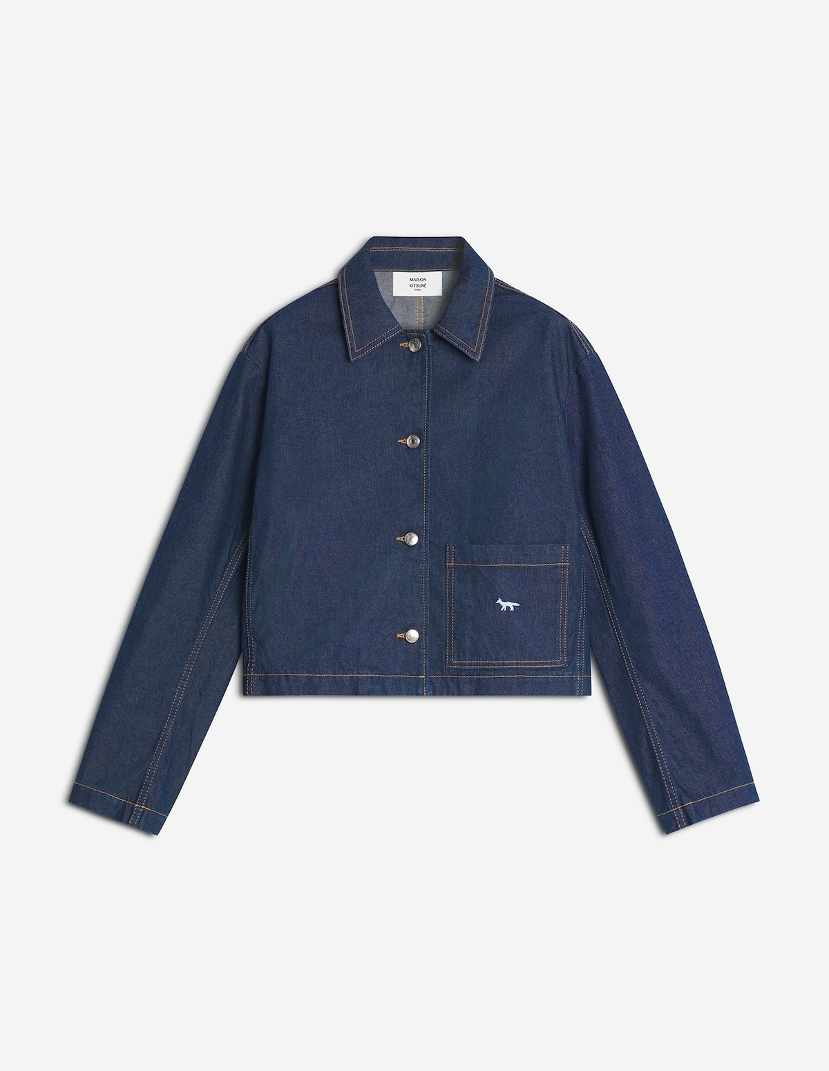 CHAQUETA MAISON KITSUNÉ Chaqueta vaquera japonesa corta. Bordado de perfil Fox y pespuntes en contraste.