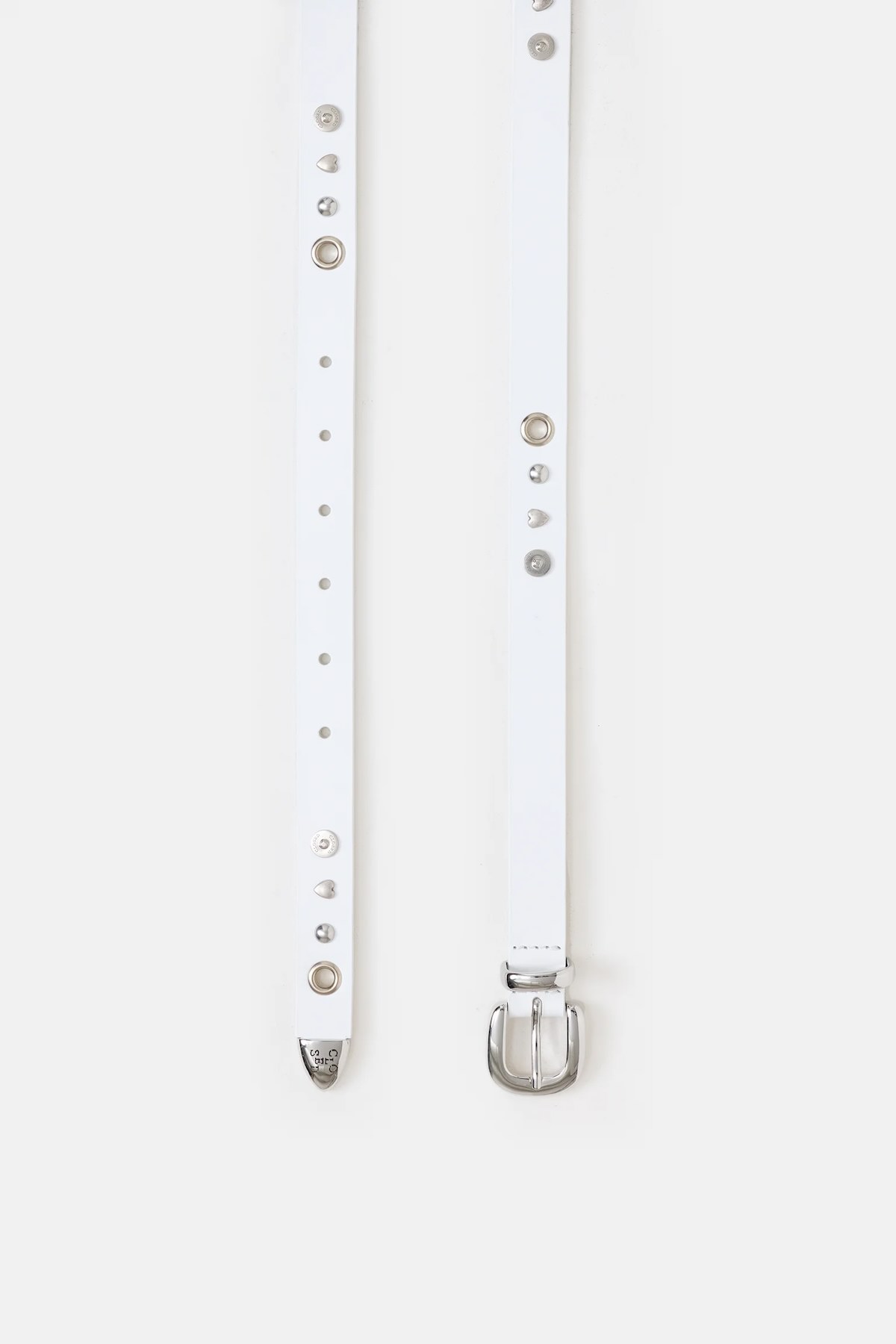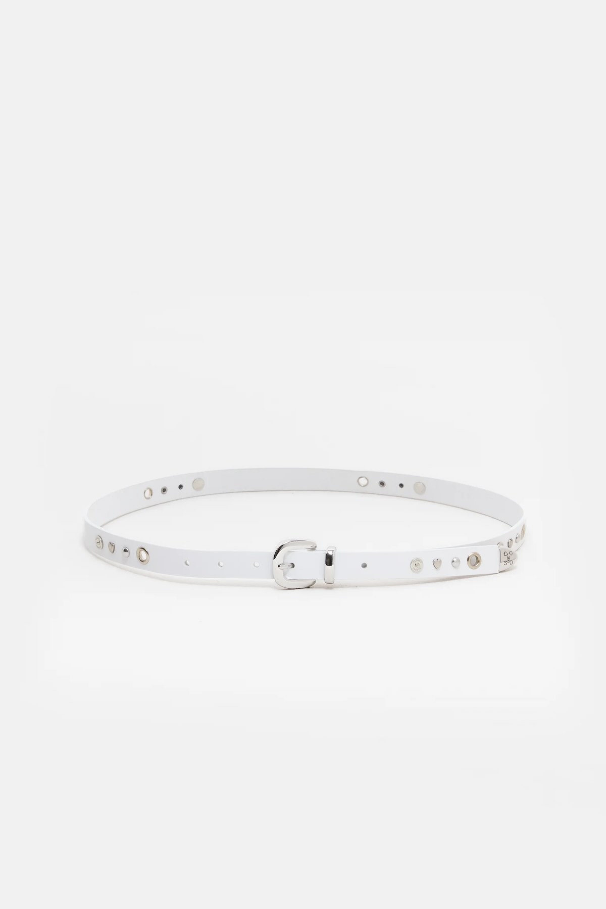 CINTURÓN CLOSED Fabricado en cuero italiano, este cinturón de alta calidad presenta bordes teñidos. Sus características distintivas incluyen adornos decorativos con remaches de corazón y denim, un logotipo en relieve y una hebilla plateada. 100 % hecho en Italia. Material y cuidado 100 % piel de vacuno Guardar en la bolsa guardapolvo incluida