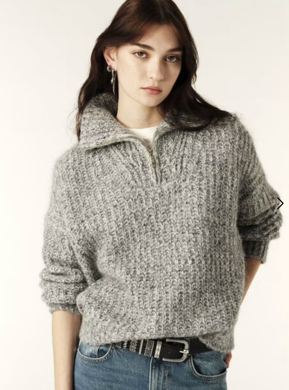 JERSEY BA&SH ¡La suavidad y la calidez están más que garantizadas con el jersey BALTAN! Con cuello camionero con cremallera, canalé ancho y sisas bajas, este modelo es uno de los imprescindibles en nuestro armario. Usado abierto o cerrado, combina fácilmente con jeans, una minifalda o jeans ajustados. ¡Nos divertimos y jugamos con los volúmenes para crear tu estilo y garantizar días cómodos y acogedores!