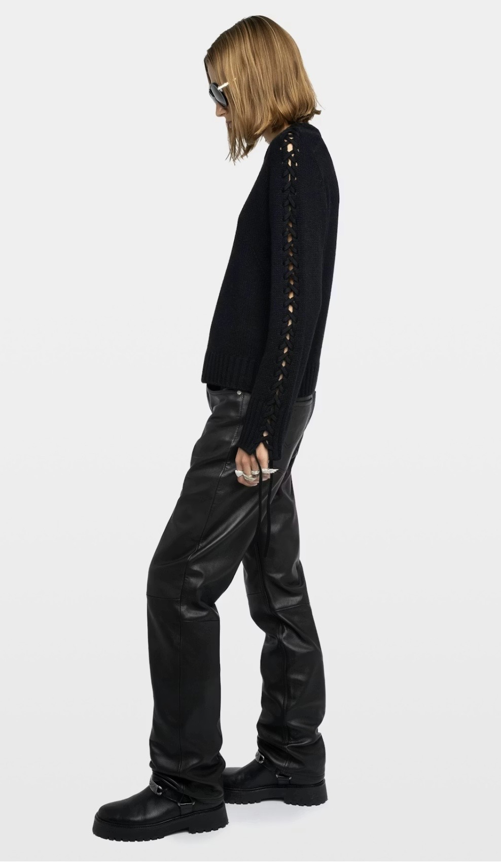 – Mangas largas con cordones y bordes deshilachados