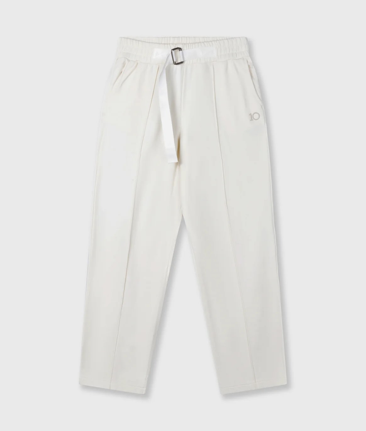 Pantalones anchos de corte relajado, confeccionados en suave algodón y poliéster. Presentan cinturilla elástica con cinturón, bolsillos laterales inclinados, un falso bolsillo trasero y un monograma "10" bordado bajo el bolsillo delantero izquierdo. Material: 77 % algodón, 21 % poliéster, 2 % elastano Instrucciones de lavado: lavar a 30 grados | no usar lejía | no usar secadora | planchar a baja temperatura |