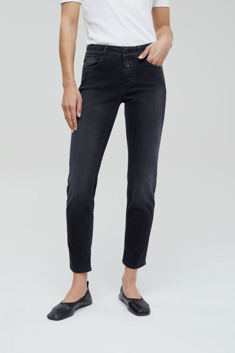 PANTALON CLOSED, confeccionado en denim elástico ligero y cómodo. Este tejido especial crea un denim con una sensación de superficie suave. Jeans de cinco bolsillos de corte slim y cintura media. Made in Italy.
