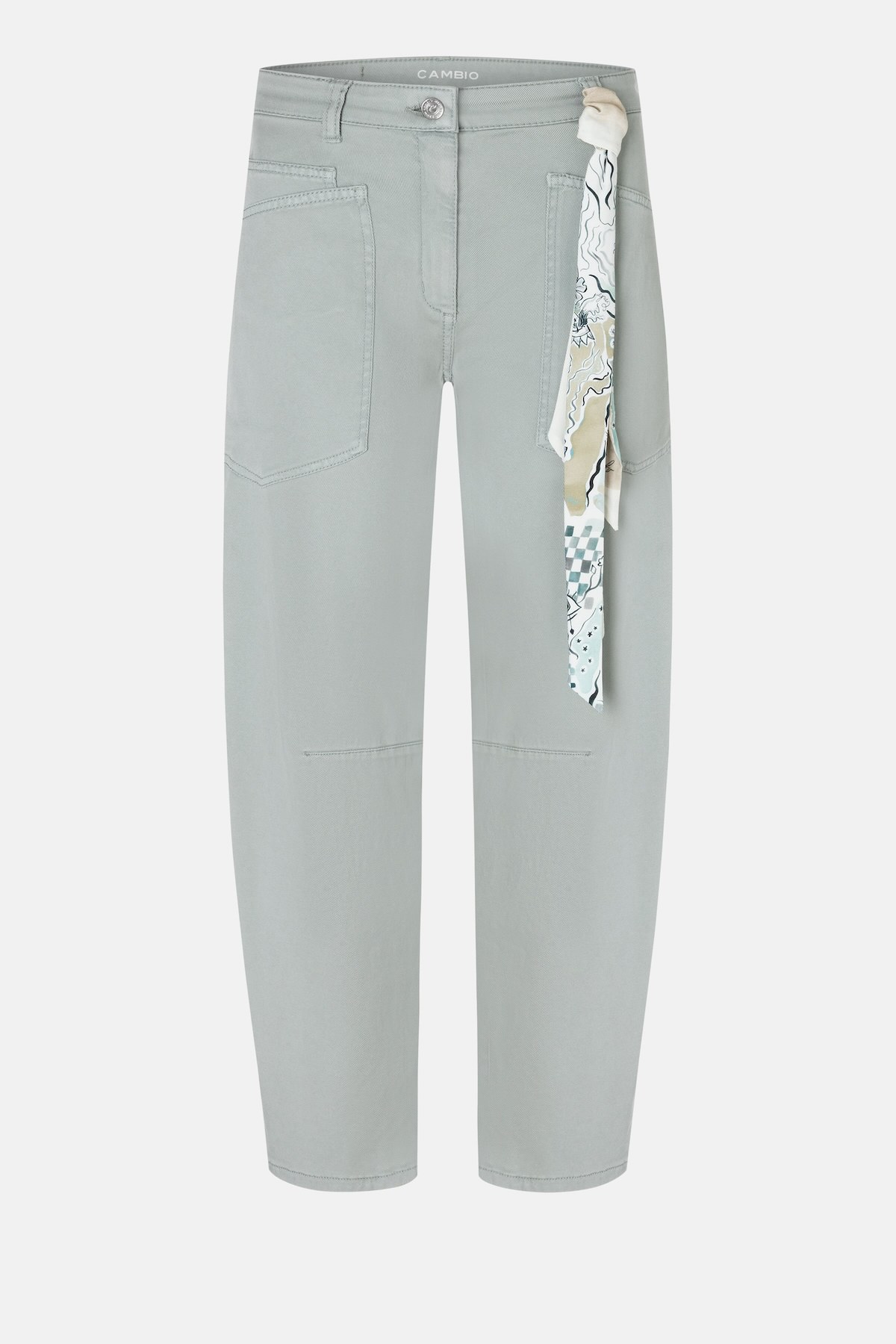 PANTALONES CORTOS EN FORMA DE O Detalles Pantalón OCEAN cropped en forma de O. Su curva voluminosa estiliza la figura, mientras que su corte ajustado y cropped crea un equilibrio armonioso entre amplitud y definición, garantizando un ajuste cómodo y un look moderno. La suave mezcla de Tencel y algodón proporciona una sensación ligera y cómoda, y el delicado tono eucalipto le da un aire fresco y contemporáneo. Los amplios bolsillos de parche en la parte delantera y el fino tejido con motivo CAMBIO completan el diseño con estilo, convirtiendo este pantalón en un elemento destacado. Pantalón cropped en forma de O Altura de la cintura: Moda Largo: 71 cm Suave mezcla de Tencel y algodón en sarga PPT 56 % Lyocell, 42 % Algodón, 2 % Elastano