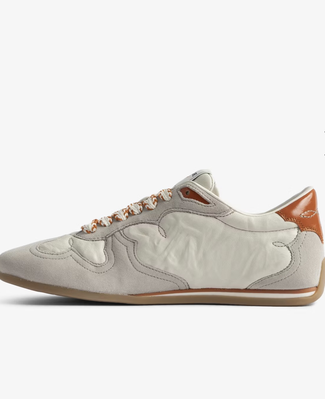 Zapatillas bajas de piel efecto arrugado con recortes western.