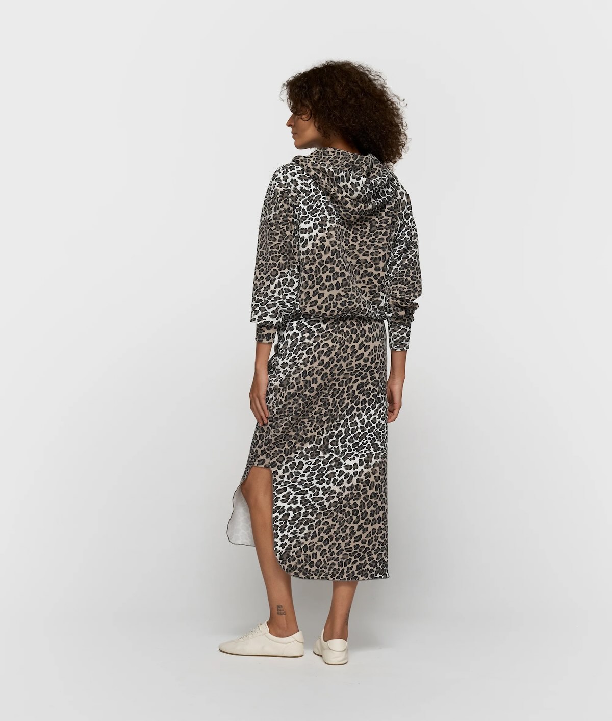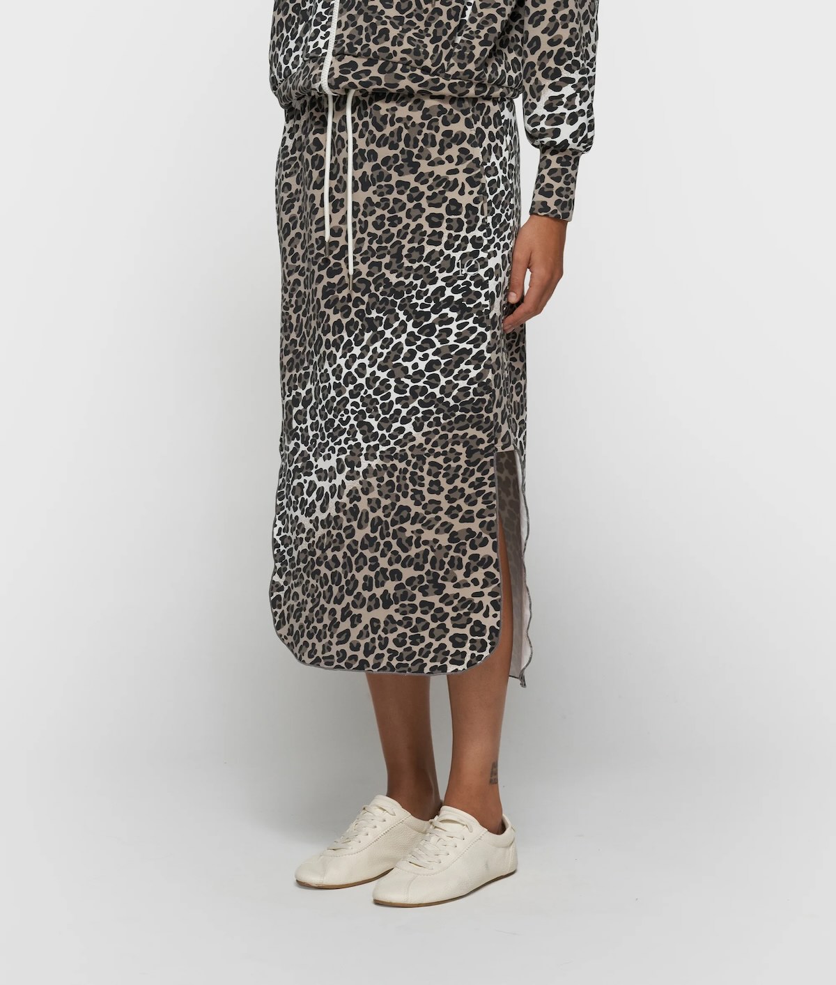 Falda midi de corte regular con estampado de leopardo, confeccionada en suave tejido scuba. Presenta cinturilla elástica con cordón, bolsillos laterales y un monograma ’10’ estampado metalizado bajo el bolsillo izquierdo. Detalles del producto Material: 48 % poliéster, 48 % viscosa, 4 % elastano Instrucciones de lavado: Lavar a 30 grados | No usar lejía | No secar en secadora | Planchar a baja temperatura | No lavar en seco Número de artículo: 20-102-6201 Hecho en Portugal Proveedor: Textil Talla y corte Corte: Esta prenda tiene un corte regular y se ajusta a la talla real. Nuestra modelo mide 175 cm y lleva una talla S. Cintura: Cintura media