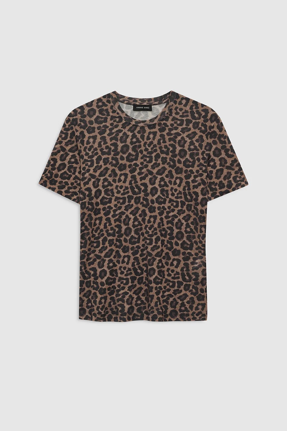 Camiseta de manga corta y cuello redondo en tejido de punto fino y transparente con estampado de leopardo de inspiración vintage. – Mezcla de lana y tencel – Corte ajustado – Cuello redondo – Manga corta La modelo lleva la talla S. Medidas de la modelo: Altura: 175 cm, Busto: 76 cm, Cintura: 58,5 cm, Cadera: 86,4 cm Medidas del producto (Talla S): Largo: 57,15 cm, Busto: 41,91 cm, Largo de manga desde el centro de la espalda: 80,01 cm