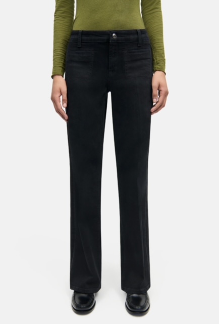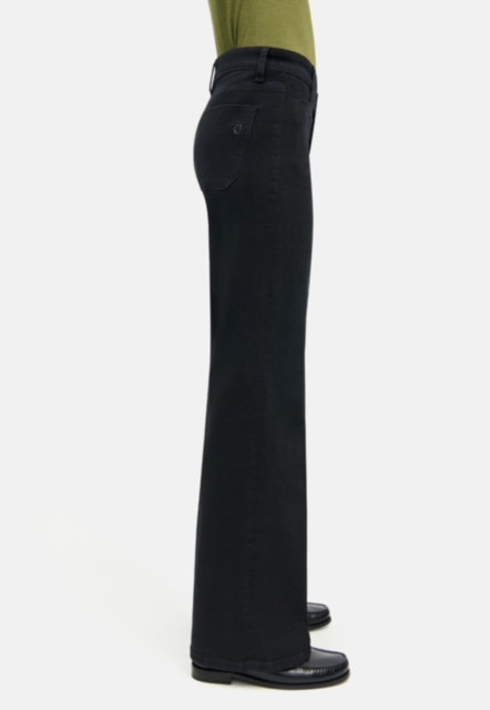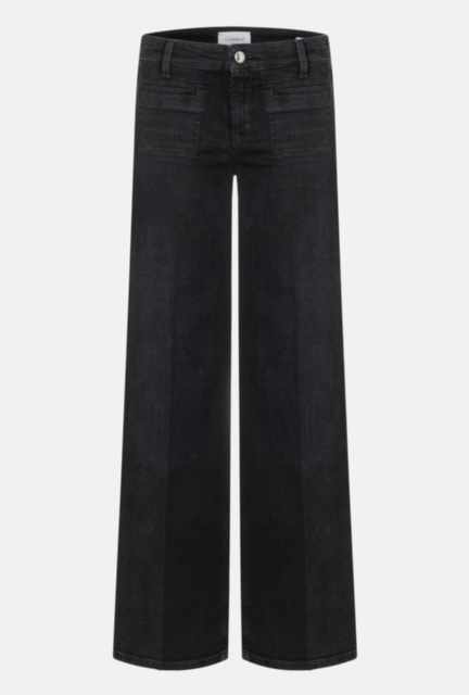 PANTALÓN CAMBIO Vaqueros TESS de pernera ancha y largo completo. Este vaquero negro impresiona con un lavado sutil y un look impecable. Gracias al elastano, se adapta cómodamente al cuerpo y garantiza un ajuste perfecto. Este modelo cuenta con distintivos bolsillos de parche delanteros que le dan su estilo característico. Disponibles en negro, azul y marrón oscuro. Vaqueros largos de corte ancho Tiro: medio Largo: 84 cm Authentic Lefthand Black Denim 92 % algodón, 6 % elastomultiéster T400, 2 % elastano Instrucciones de cuidado Lavado delicado 30 °C No usar lejía No secar en secadora Planchar a baja temperatura No lavar en seco