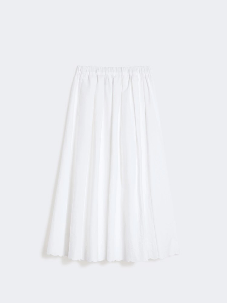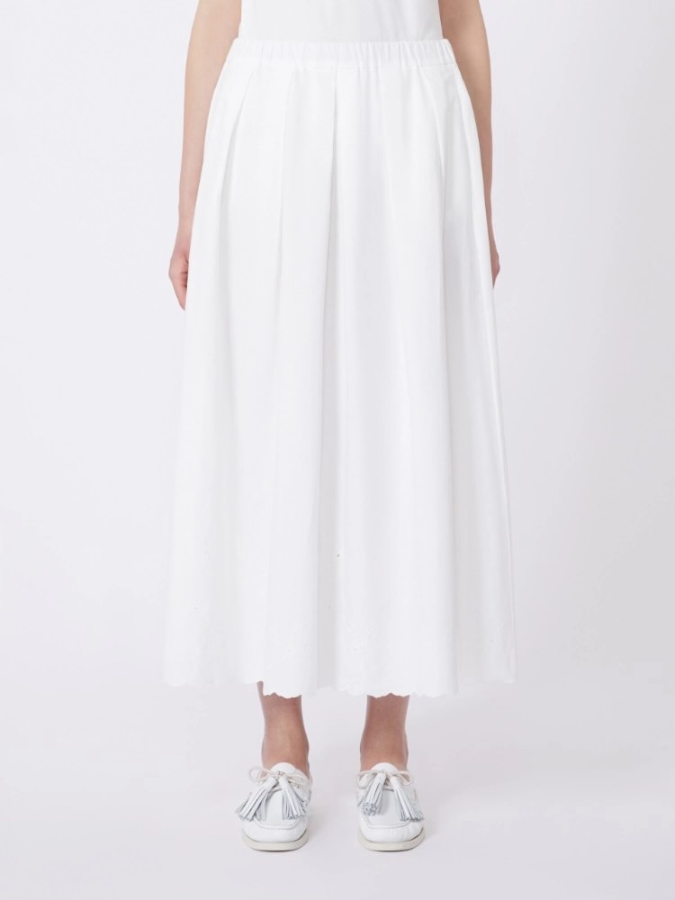 Falda larga de corte en A, adornada con bordado sangallo en el bajo festoneado.