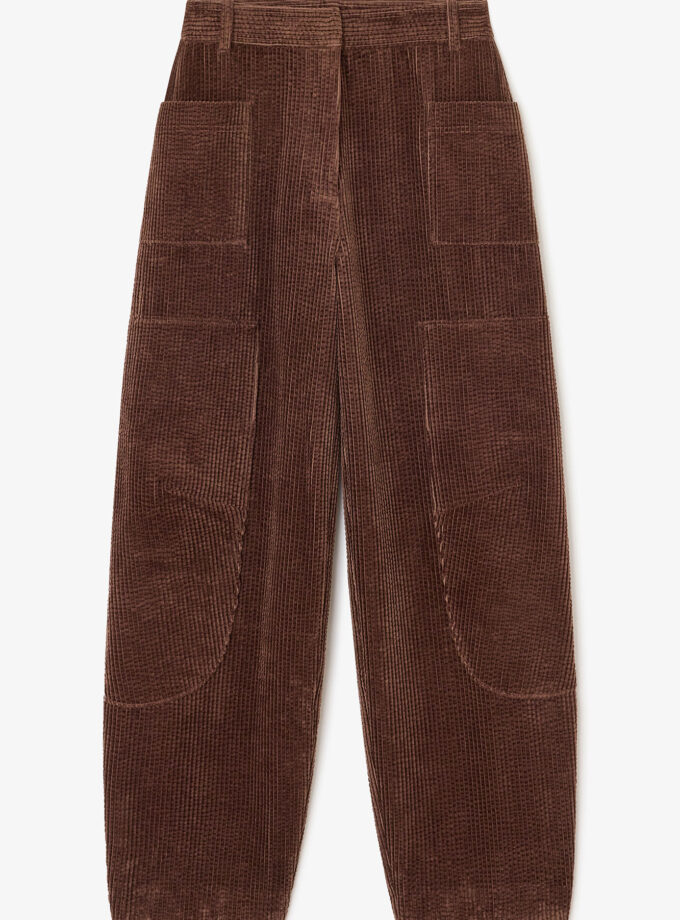 Pantalones curvos de pana marrón GANNI