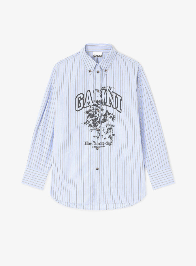 Camisa con logo de rayas azules GANNI